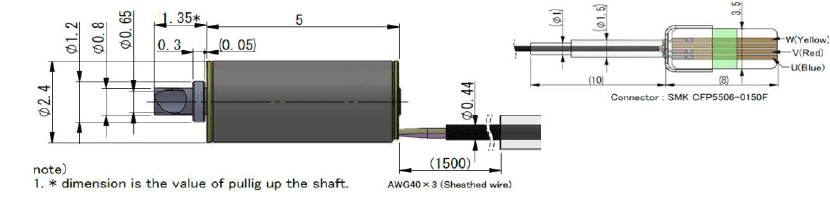 ※DBL024-05XXは、直径2.4mm, 長さ5mmのブラシレスモーターです。