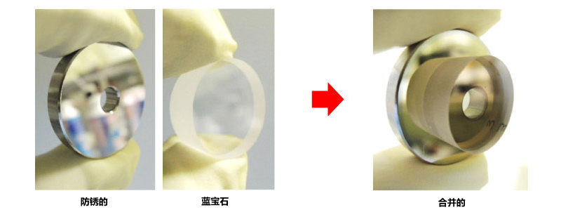 也可以将陶瓷连接在一起。蓝宝石直径φ33mm-厚度0.5mm, 氧化锆直径φ20mm-厚度0.7mm。